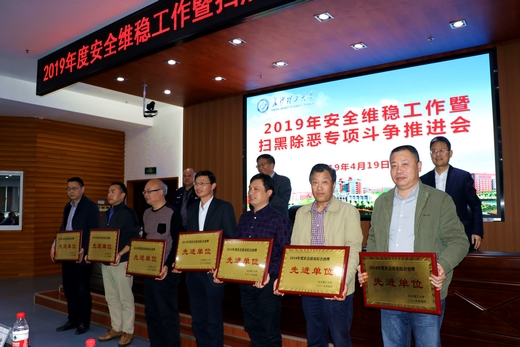 会上,对2018年度社会治安综合治理先进单位和先进个人进行了表彰并为先进单位颁发奖牌。