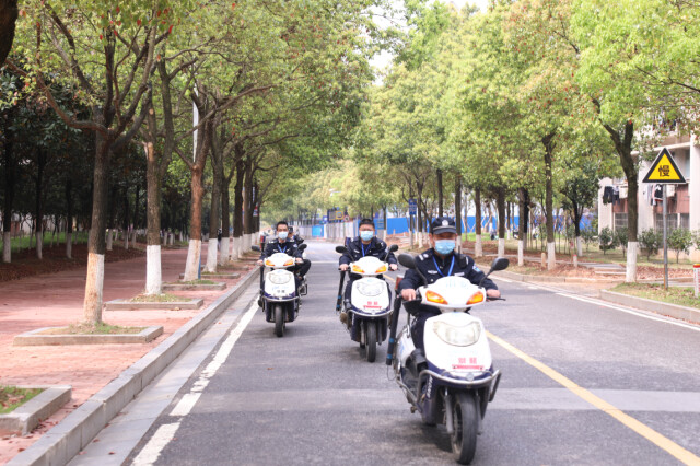 综合管理科科长朱波涌开启了连轴转的工作模式。早晚上下班高峰期在门岗协助处理突发情况,白天工作时段在办公室处理日常事务,中午时段在校园内进行秩序维护和电动车规范管理,晚间对校园内重点场所、重点楼栋进行安全巡查,协助做好疫情防控工作和应急处理……2500亩的云塘校园,他和同事们每天至少要巡5个来回,力求不留一处死角,不出一个漏洞。
