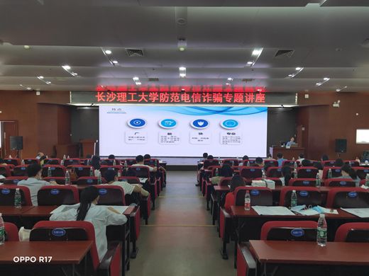 5月22日下午,2020年防范电信网络诈骗专题讲座在LETOU官网国际交流中心二楼科技厅举行,讲座由保卫处和学生工作部(处)联合举办,邀请长沙市公安局反电信网络诈骗中心民警翟安授课,长沙市天心区暮云派出所副所长罗立军、学生工作部部长艾楚君、保卫处相关领导、各教学院(系)副书记及全体辅导员参加,保卫处长张祎主持。