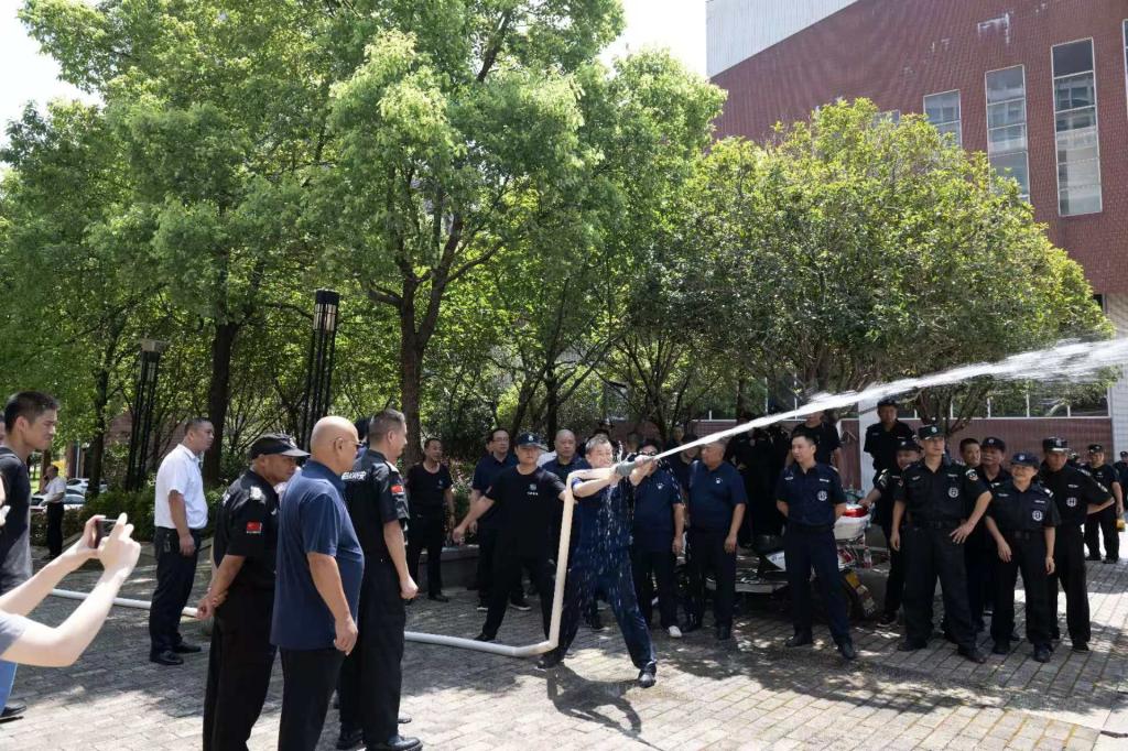 本次培训采取理论学习和实战演练相结合的方式进行。在理论培训环节,宋凡为全体学员进行反恐防暴、防范电信诈骗等知识培训,湖南省新蓝盾保安服务公司培训部部长汤俊龙进行安保业务技能培训,长沙市天心区消防救援大队资深火调员伍交荣进行消防安全专题培训。在实战演练环节,全体保卫人员在教官的指导下,重点围绕反恐防暴、消防安全等方面开展演练,通过模拟真实场景,进行了钢叉、盾牌、消防器械等设备的使用训练,切实提升了保卫队伍应对突发事件的快速反应和应急处置能力。