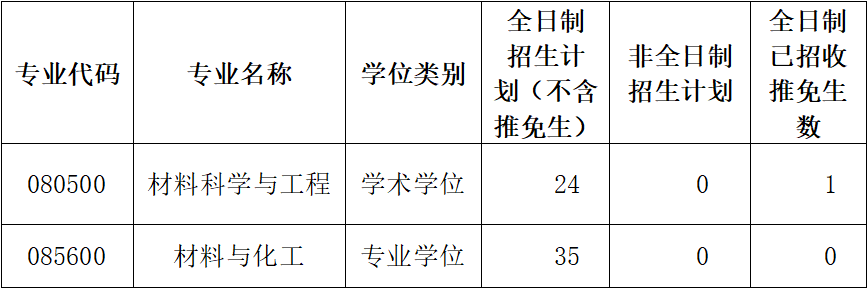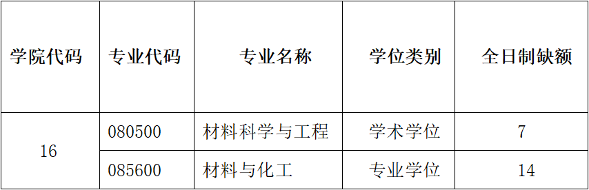 表2 2022年材料科学与工程学院分专业缺额情况表