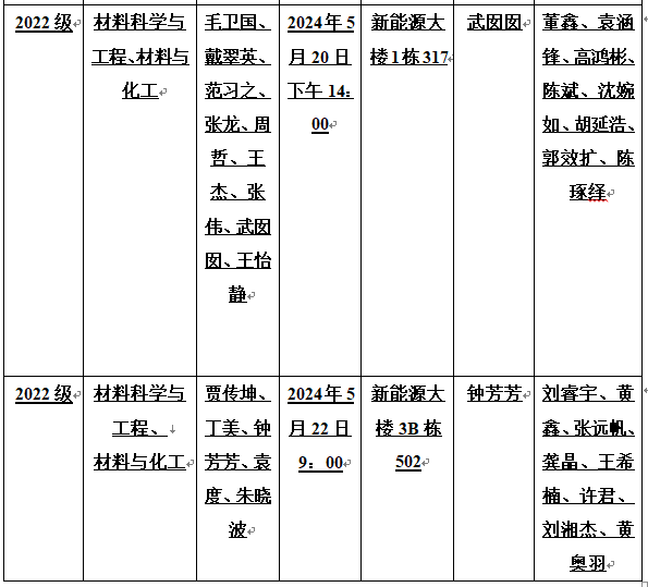 LETOU体育平台材料科学与工程学院研究生中期考核安排表(更改)