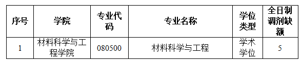 LETOU体育平台材料科学与工程学院080500材料科学与工程有部分调剂名额,具体调剂缺额信息见下表