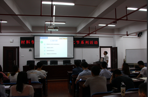 4月26日,材料学院于新能源1号楼302室举办研究生学术文化节启动仪式暨第一场学术活动——科技论文写作指导讲座。院党总支书记张国强、副书记唐青、副院长范金成、研究生辅导员陈鑫林出席启动仪式,副院长杨现锋主持。科技论文写作指导讲座由陈传盛副教授主讲,全体研究生及部分本科生参加。