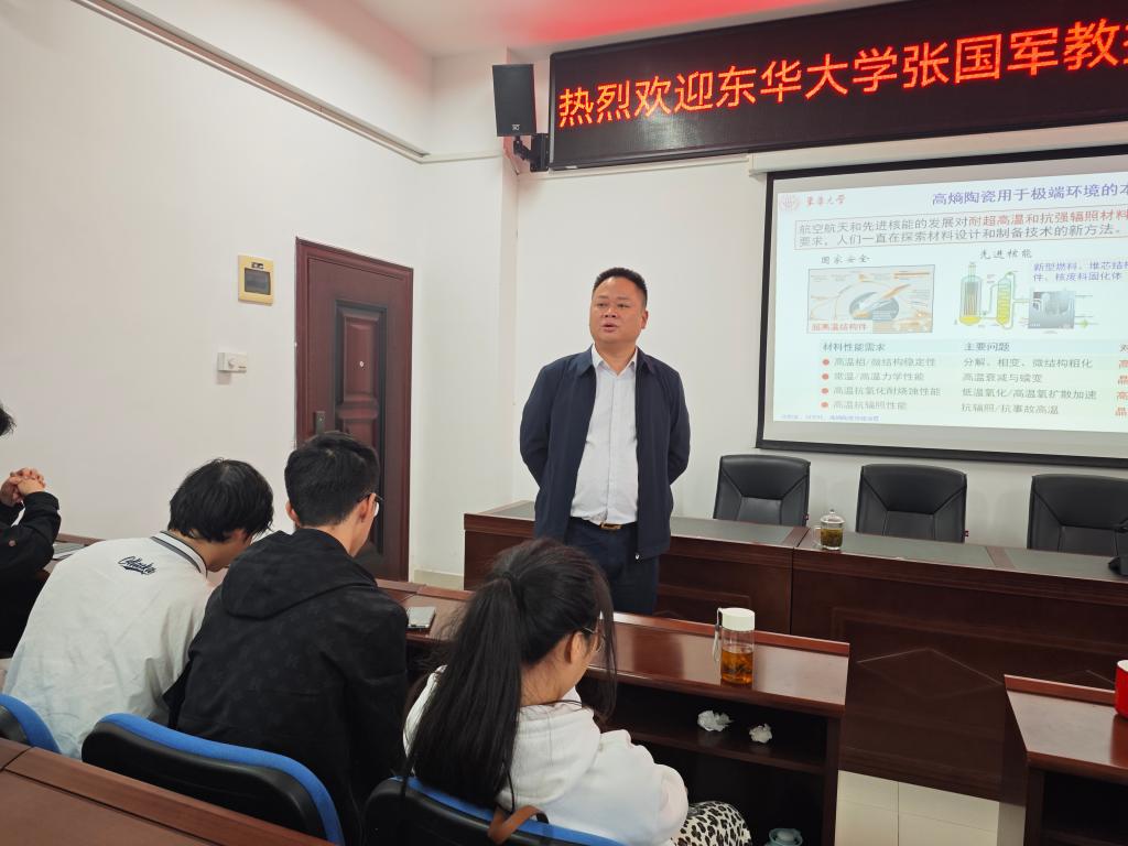 2024111日上午,东华大学教授、博导张国军应邀在新能源大楼1A-908开展学术报告,材料学院部分师生参加,院长毛卫国主持会议。