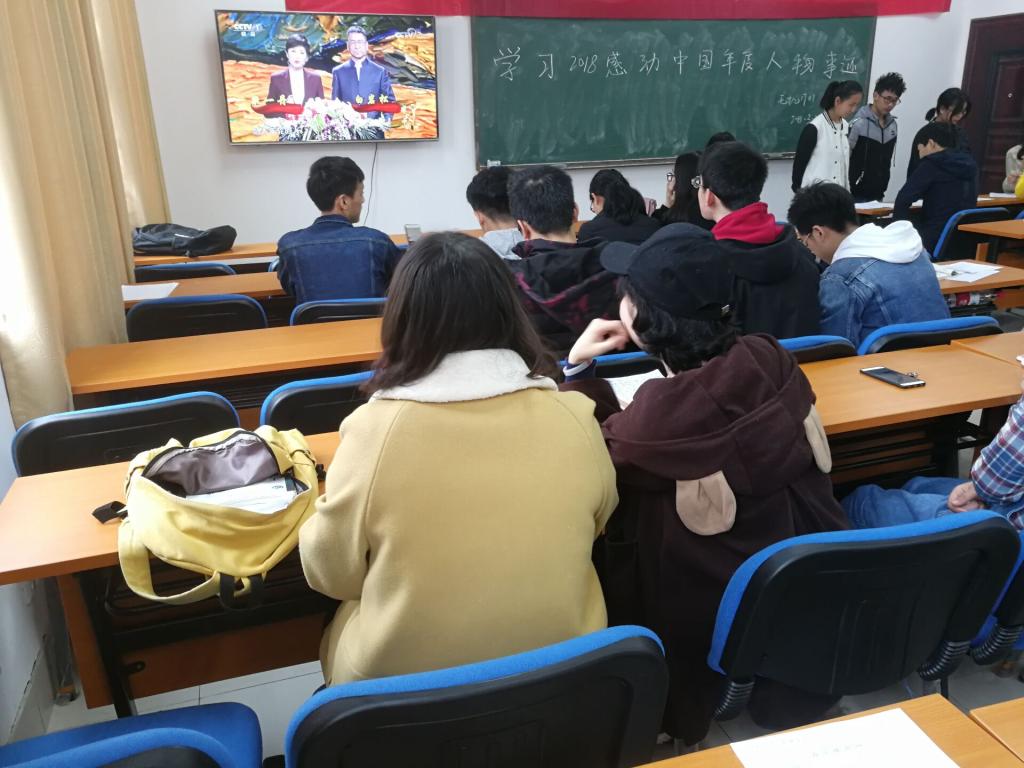 大三大四的高年级同学在班会中表现积极,为各位学弟学妹树立了良好的榜样,大一大二的低年级同学表现出了强烈的学习激情,在班会上积极发言,畅谈自己学习了2018感动中国年度人物事迹以后的感想和体会,不仅自己认真地学习有关资料,而且积极带动周围的同学参与进来,在年级上下形成了一种良好的风气。