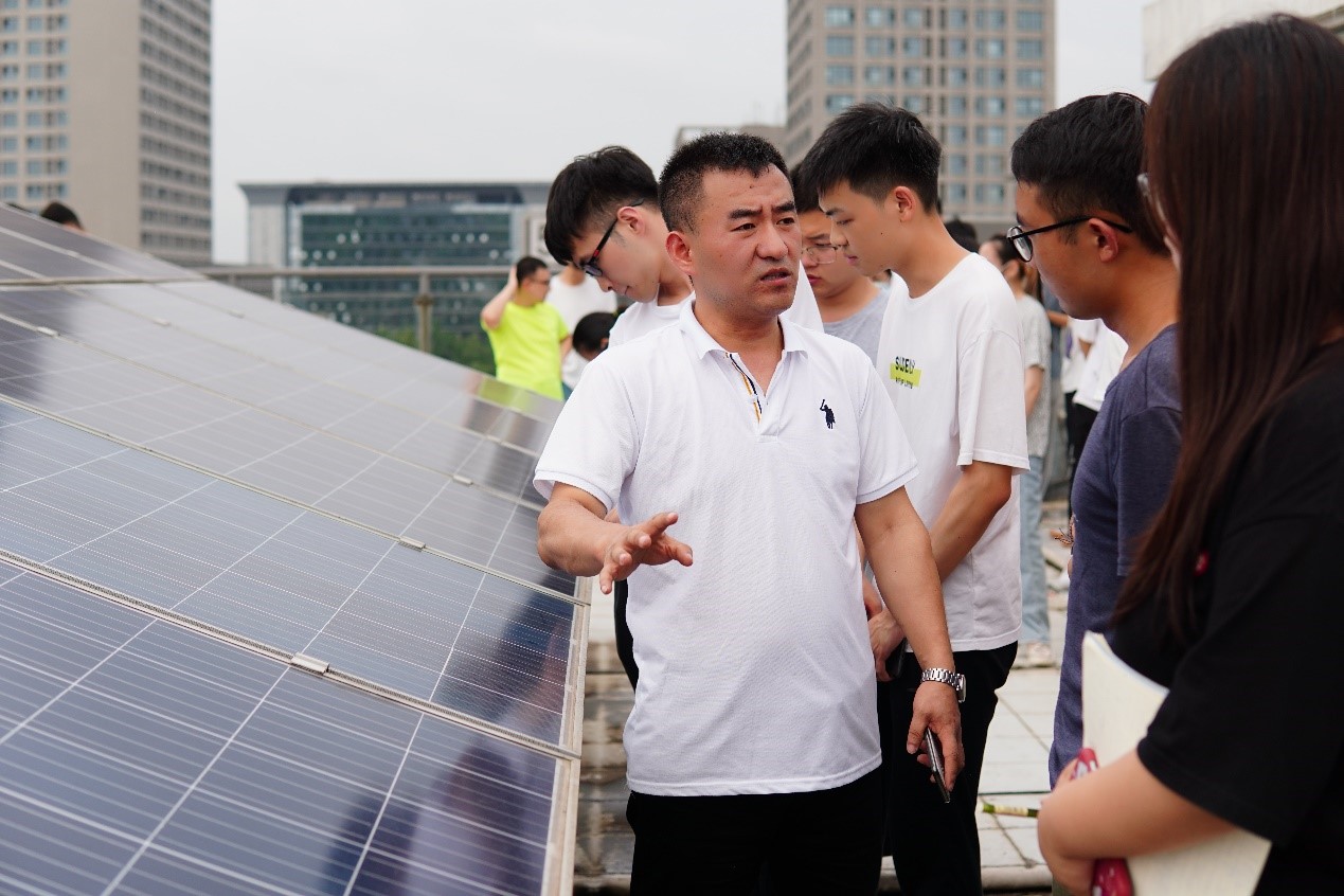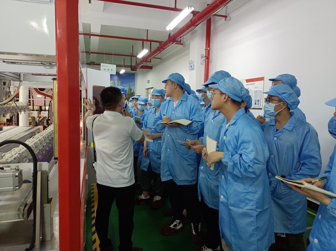 生产主管付志强带领学生们参观了生产产线展区及电站,他先跟学生们强调了注意事项,随后依次介绍了