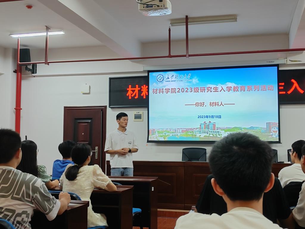 9月18日晚,材料学院2023级研究生“走好研途第一步”入学教育启动仪式在新能源1栋302进行,2023级研究生辅导员王志亮出席,研究生会各部门及2023级全体研究生参加,此次活动分为新生班会(班委竞选)、新老生交流会、《研究生手册》校纪校规专题学习以及院研究生组织介绍、招新四个部分。活动由院研究生会轮值主席李秋月主持。