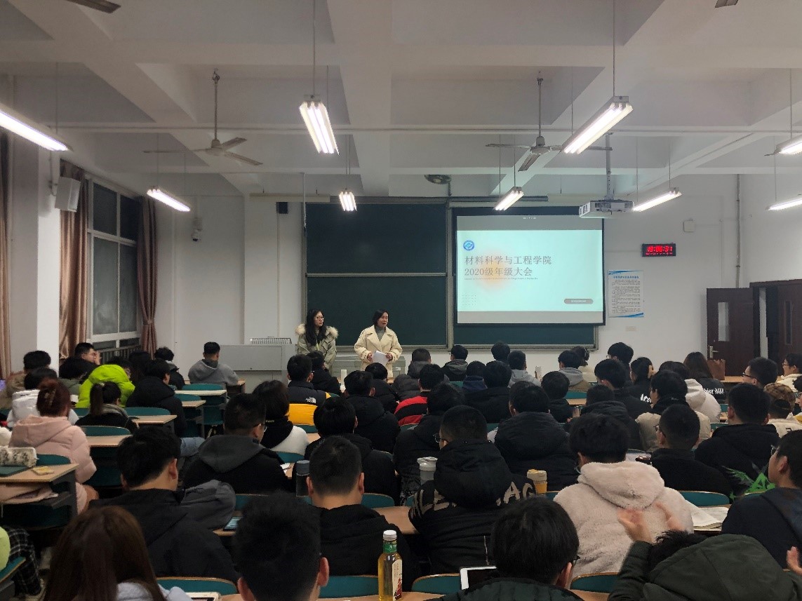 2月23日19点,材料科学与工程学院在工三A216召开2020级本科生新学期第一次年级大会。会议由年级辅导员李心怡主持,我院党总支副书记陈华出席,20级全体学生参加。