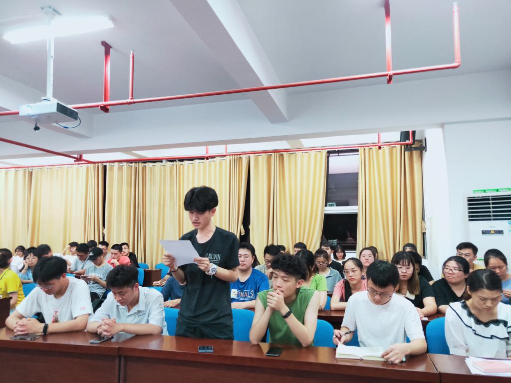 7月14日晚,材料学院于新能源一栋302室召开2021年暑期留校本科生安全教育大会。会议由18级辅导员王志亮主持,学院党总支副书记陈华以及全体留校本科生参会。