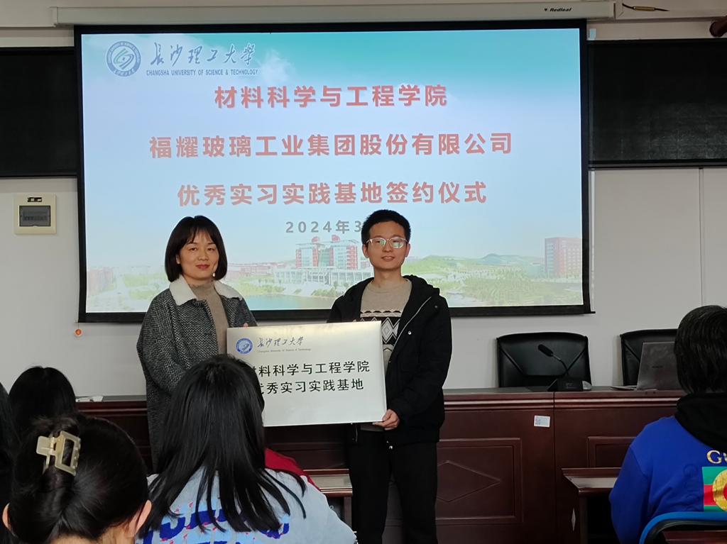 3月19日下午,材料科学与工程学院与福耀玻璃工业集团股份有限公司优秀实习实践基地签约仪式”在云塘校区新能源大楼一号楼302顺利举行学院党委副书记邵巧艳,辅导员谢易真、谭方林、王志亮各年级学生代表参加