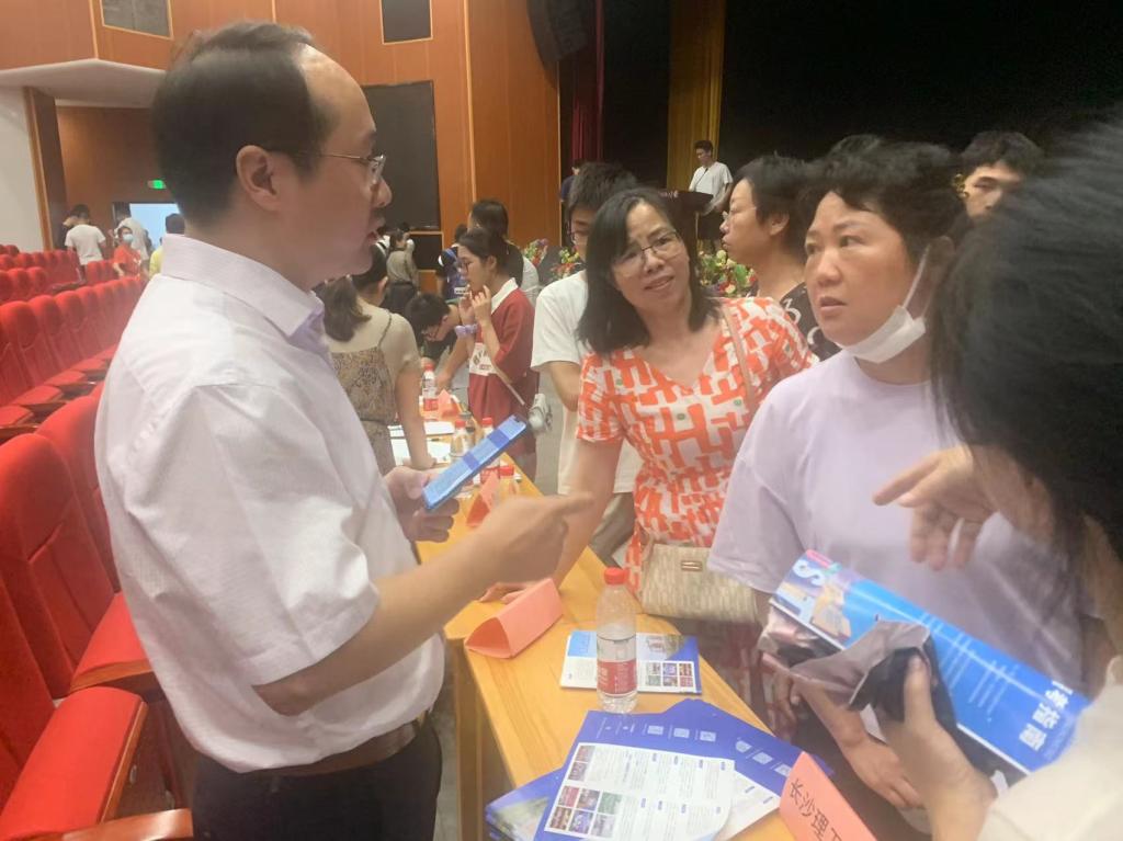 6月以来,学院共印刷了招生宣传折页2000余份,制作了易拉宝6份,院长毛卫国在直播平台进行专业解读,15名教师组成8支队伍,分别赴长沙、株洲、岳阳、华容、湘阴、汨罗、平江等多地的30余所高中开展招生宣传工作。学院招生咨询宣讲团围绕高考志愿填报、分数位次预测、专业内容学习、就业升学前景等考生及家长关心较多的问题进行耐心细致解答,根据他们的分数位次、专业意向,精准高效地提出志愿填报的对策和建议,受到家长和考生的一致好评。