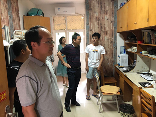 6月5日,在端午节来临之际,材料学院全体党政领导在院党总支书记张国强的带领下,深入走访学生宿舍。
