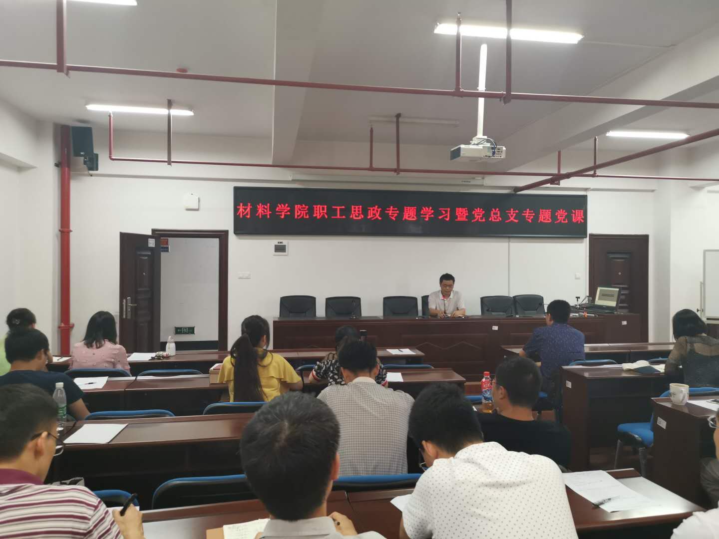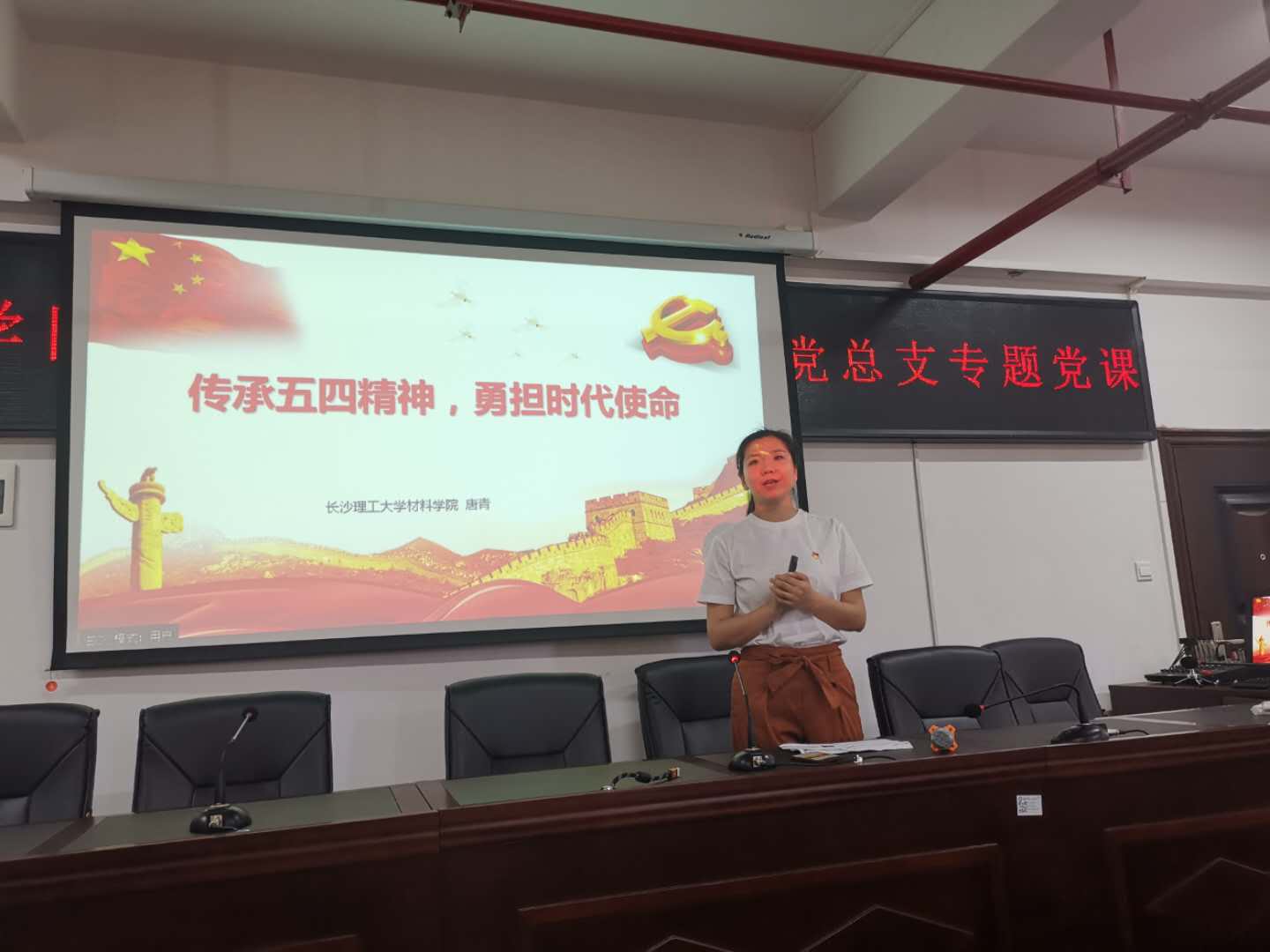 赠书仪式后,学院组织全院教职工进行了思想政治教育专题学习。副书记唐青为全院教职工讲授题为“传承五四精神,勇担时代使命”的党课。她从重温“五四精神”,不忘苦难历史;传递“五四精神”,进步青年提先锋;诠释“五四精神”,代代青年勇接力三个方面,结合学院建设与发展实际,为全体老师、党员作了一次深刻生动的思政专题讲座,也是一次党总支成员为教工党员上党课。