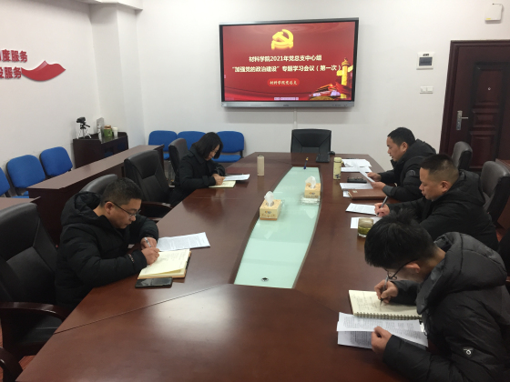 1月5日下午,材料学院党总支中心组在新能源大楼1栋317会议室召开了党总支中心组“加强党的政治建设”专题学习会议,会议由院党总支书记张国强主持,学院领导班子参加了会议。