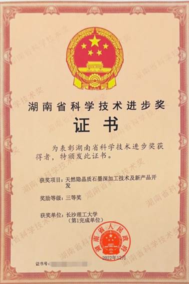 近日,湖南省科技创新奖励大会在长沙召开,由我院谢炜教授科研团队主持完成的天然隐晶质石墨深加工技术及新产品开发荣获2021年度湖南省科学技术进步奖三等奖。