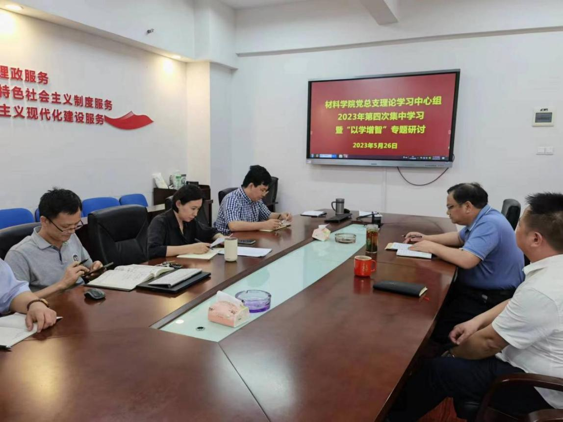 5月26日下午,在新能源1#楼317会议室,材料学院党总支理论学习中心组进行2023年第四次集中学习,并就“以学增智,提升政治能力”进行了专题研讨,全体中心组成员参加。