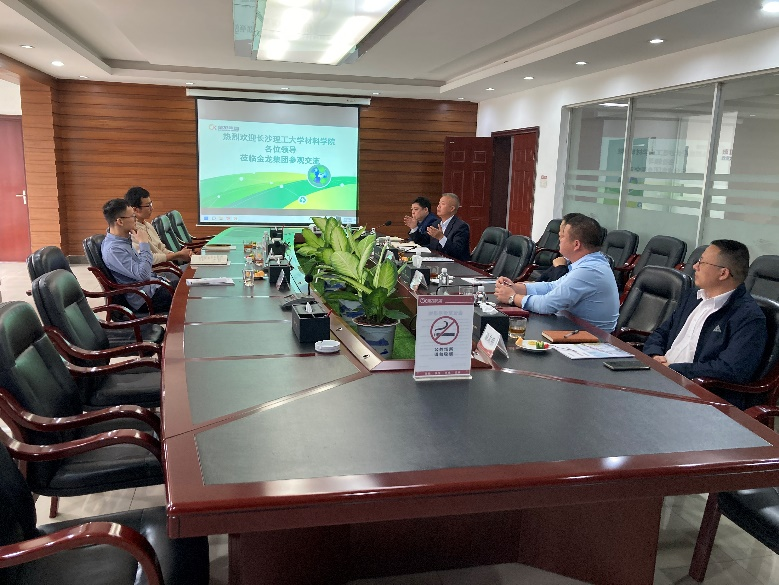 10月26日上午,LETOU体育平台材料学院副院长段军飞、秦伟博士和李天乐博士一行,至金龙集团进行调研与交流。金龙集团总经理王先周、人力资源部经理吴林明、生产部经理龙俊、销售人力资源经理欧志明等参加座谈。
