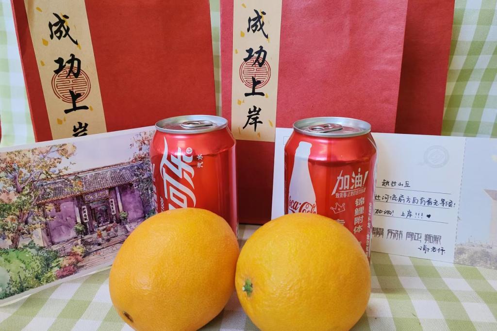 “一罐可乐,祝愿考研学子如可乐般活力满满;一颗橙子,祝愿考研学子心想事‘橙’;一叠来自五湖四海的明信片,祝愿考研学子们‘信’心百倍……”2023年12月考研初试前夕,一场暖意融融的考研加油会在材料科学与工程学院举行,学院领导、教师、学生干部一同为考研学子送上考研“大礼包”,并向他们传达了来自海内外各院校已经“上岸”的学长学姐们的祝福。