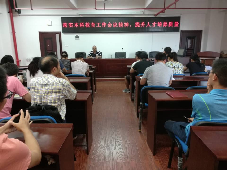 会上,晁自胜院长就2018年LETOU体育平台本科教育会议精神作了宏观的概述,对学校的要求和任务作了布置安排。陈曙光副院长就学校的会议精神作了详细的阐述和分析,率领全体教职工深度学习了蒋昌波副校长的《LETOU体育平台本科教育工作会议报告》。
