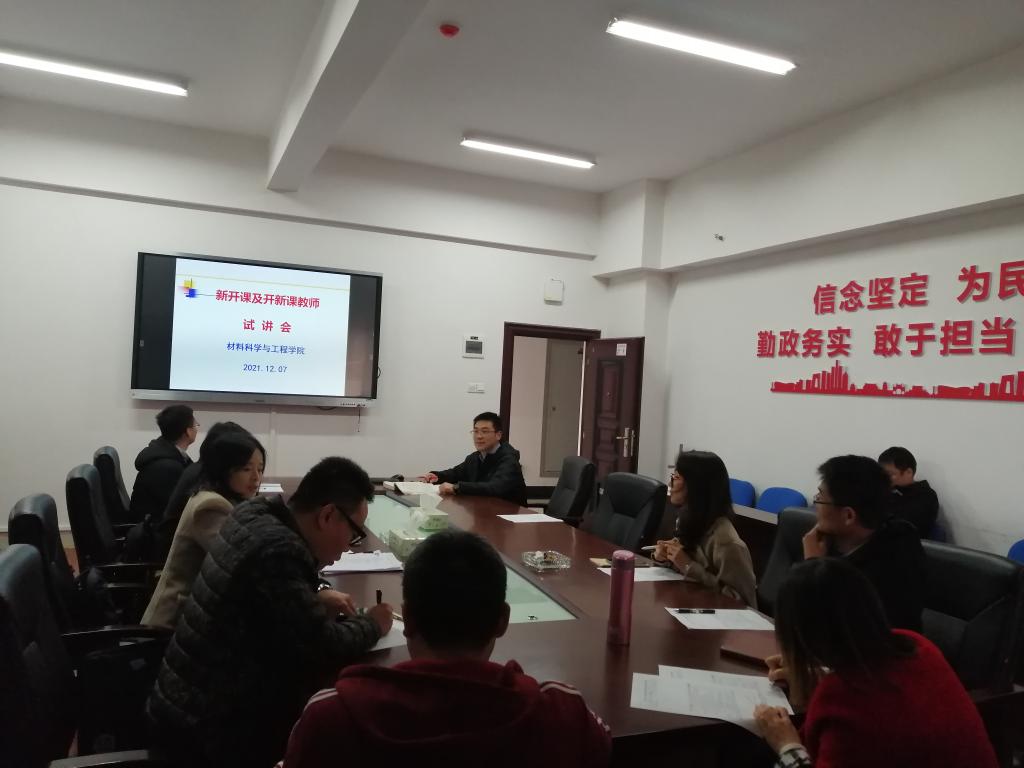 2021年12月7日下午,材料科学与工程学院于新能源一号楼317进行新开课和新开课教师试讲会,院督导夏清、范金成、陈曙光,系主任刘鹏、龚丽,系副主任樊哲琼、张怡琼、周哲,教务办主任李锦文参加评审,吴翔、张龙两位博士分别进行了开新课和新开课主讲教师资格的试讲。
