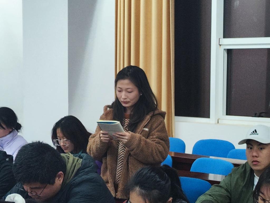 各组宣讲结束后,学员们积极地进行了心得分享:胡丽丽以组内宣讲作为引入,提到应将对先辈的继承和自我的发展运用到自身,并以奉献之心投入到祖国所需要的地方。肖应广则谈论到了党的发展,并表明了中国式现代化的重要性,要走中国自己的道路,发展中国特色社会主义制度。