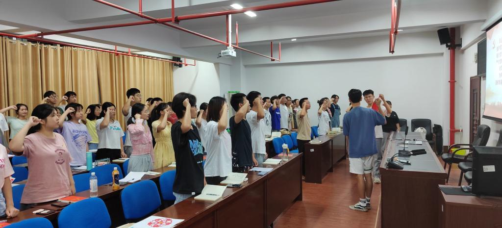 会议开始,黄玉带领全体党员重温入党誓词,全体党员在党旗下庄严宣誓。接着,何艺璇组织全体党员共同观看《习近平谈治国理政》第四卷学习视频,视频传达出了《习近平谈治国理政》第四卷的主要内容和重要意义。视频结束后,党员代表熊田、杨明月和章鑫宇分享了自己的学习感悟,表明身为党员要坚定理想信念,紧跟党的步伐,以实际行动继续向第二个百年奋斗目标迈进。随后进行了“献礼祖国,喜迎二十大”作品展示,同景天、曾子坚分享了自己的作品,以“道阻且长,行则将至”表明在党的带领下,我们不断前行,未来可期。会议最后,支部书记谭方林进行会议总结,他提出学生党员首先要努力学习,不断提升自己,才能在未来更好的服务社会,同时强调了实践的重要性,希望全体党员拓宽自己的眼界。