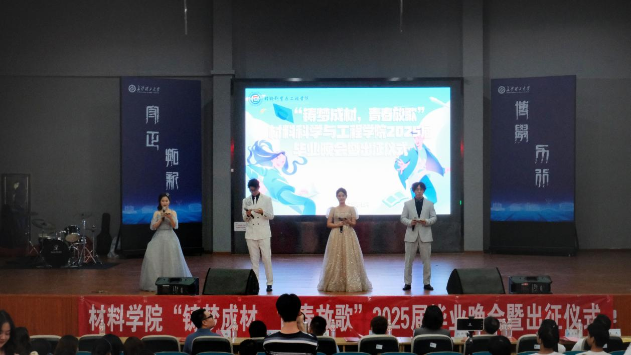最后,随着《海阔天空》激昂的旋律在现场回荡,材料科学与工程学院2025届“铸梦成材·青春放歌”毕业晚会暨出征仪式在经久不息的掌声与依依惜别的氛围中圆满落下帷幕。这场由师生共同编织的青春盛典,不仅是对过往求学岁月的深情回望,更是对崭新未来的壮丽启程。未来,毕业生们必将以“材料人”特有的坚韧与智慧,在祖国最需要的地方绽放青春,在实现中华民族伟大复兴中国梦的实践中贡献磅礴的青春力量!