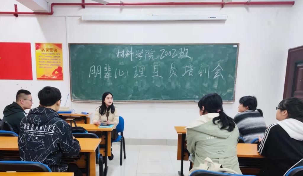 11月1日上午9点,材料学院在新能源大楼一号楼303室分班级召开朋辈心理互助员培训会,学院心理辅导员谢易真主讲,材料2002班朋辈心理互助员参加。