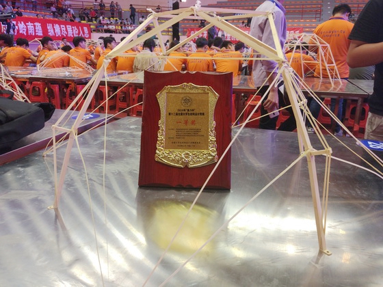 比赛中,我院参赛选手沉着冷静,新颖的题目、模型的设计制作给队员们带来了很大的挑战。在前期的备赛过程中,队员们遇到了许多困难,但他们凭着坚强的毅力、专注的精神、创新的理念,不断尝试和探索,认真进行结构模型体系研讨、设计方案确定、模型制作,并及时进行荷载试验,最终确定设计方案。