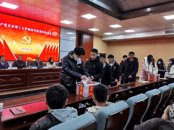 12月28日下午,城南学院党委在金盆岭校区四教报告厅召开第四次换届选举大会。校党委委员、副校长谈传生,校党委组织部副部长李芳瑾莅临本次会议。城南学院全体师生正式党员参会。会议由院长赵华主持。