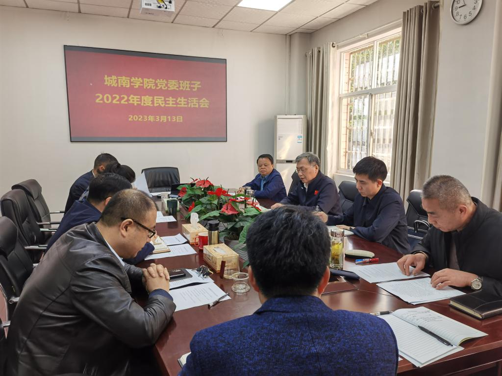 3月13日,城南学院党委在金盆岭2教202室召开2022年度民主生活会。学校党委委员、副校长谈传生,督导组成员、校党委组织部副部长、党校副校长王煜坤到会指导,会议由院党委书记李修春主持。