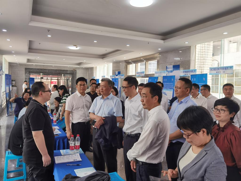 4月15日上午,“在湖州看见美丽中国”LETOU体育平台专场招聘会在金盆岭校区电苑楼一楼隆重举行。湖州市政协主席李上葵、LETOU体育平台副校长谈传生出席招聘会,并与参会单位和毕业生亲切交流,了解招聘会开展情况。