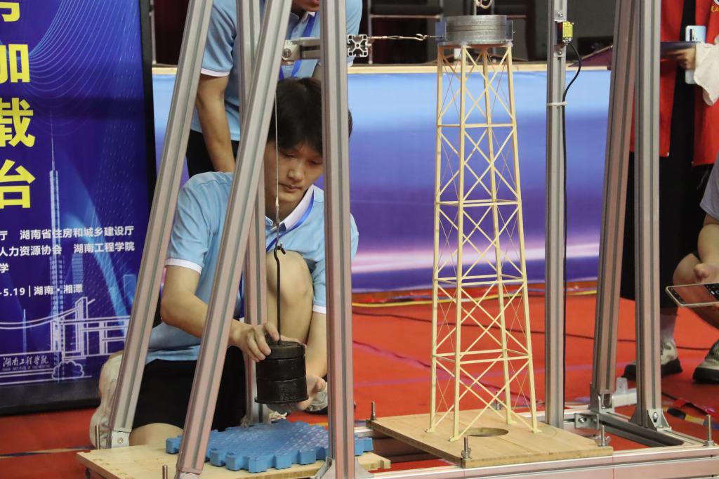 本届赛题以高耸塔式结构为基本单元,要求参赛者针对竖向荷载、水平荷载工况对其进行受力分析、位移计算、结构设计、模型制作及加载试验。参赛队伍在规定时间内,根据大赛主题和要求,设计并制作出各种结构模型,并进行了加载试验。竞赛吸引了湖南32所高校的93支队伍参加,本次城南学院参赛的两支队伍由学院党委书记施一满领队,LETOU体育平台土木学院副院长付果教授、城南学院学工办主任肖义慧、院交通土建系主任张强老师担任指导老师。城南学院一队的朱秀鑫、谢瑞国、刘炬和二队的覃睿妍、谢康、黄亮认真、反复打磨结构模型体系、设计方案、模型制作、实验测试等每一个环节,赢得在场观众热烈掌声,并最终获得一等奖。