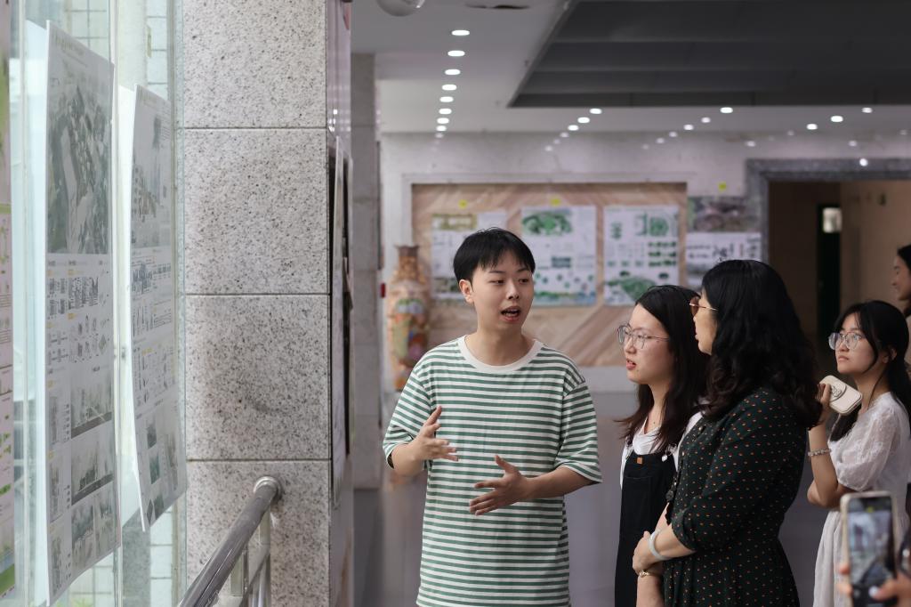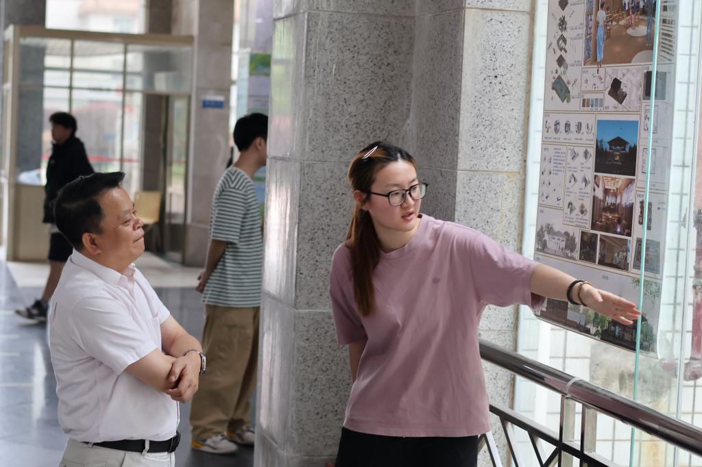 本次作品展以环境改善、城市更新、乡村振兴、文化传承保护为目标,以求实、创新为设计思想,以社会关怀、人文精神为设计理念,再加上专业的设计能力,从环境的角度表达着对社会生活各个维度的关注和思考。学院领导也在现场同专业指导老师以及同学们亲切沟通交流,询问着作品的设计理念及制作过程。