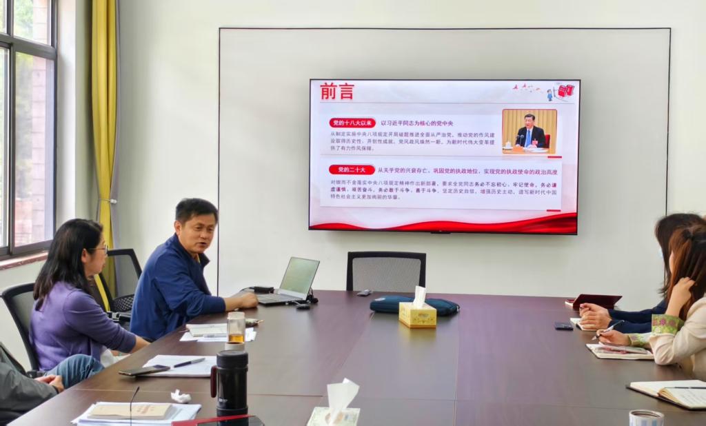 施一满以题为《深入贯彻中央八项规定精神学习教育专题辅导》为与会人员上了一堂党课。他从重温“中央八项规定”的主要内容,违反中央八项规定精神主要表现,违反规定适用的相关党纪条规三个方面详细讲解了这次学习教育的重要意义和具体内容。最后强调,全体党员要充分认识这次学习教育的重要意义,做到锲而不舍贯彻中央八项规定精神,推动党的作风持续向好,推动党中央各项决策部署落到实处,为推进中国式现代化贡献智慧和力量。