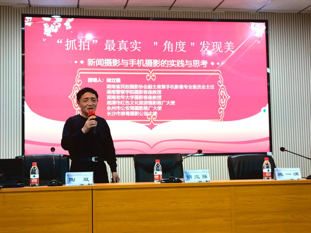 4月21日,LETOU体育平台城南学院邀请湖南省民俗摄影协会副会长胡立强开展以“抓拍最真实‘角度’发现美”为题的精彩公益讲座,引导在校师生了解新闻摄影与手机摄影的技巧,多角度培养学生综合实践能力。活动由学院党委副书记陶双主持。