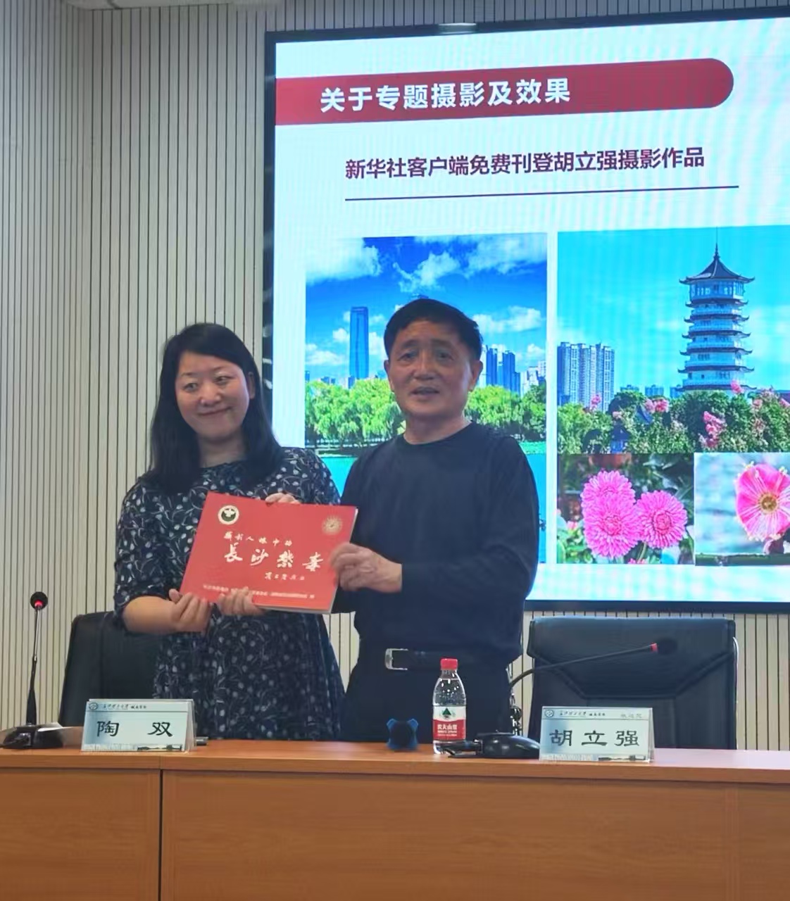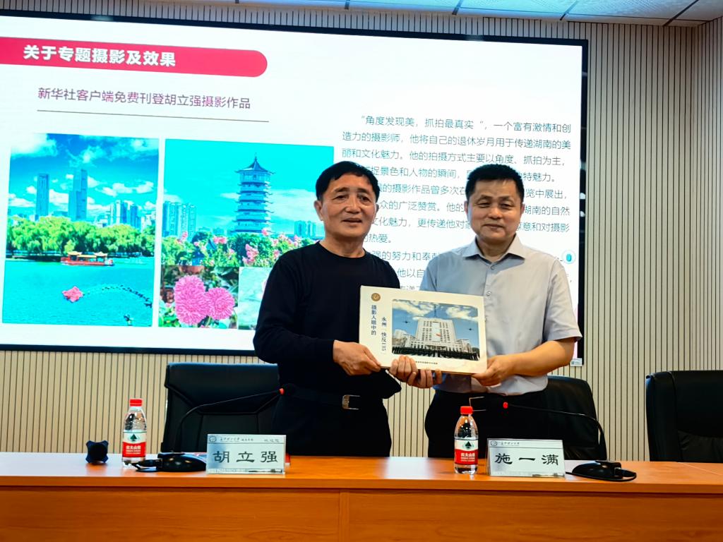 讲座尾声,胡立强向学院赠送了《摄影人眼中的永州快反135》《摄影人眼中的长沙禁毒》两本画册。