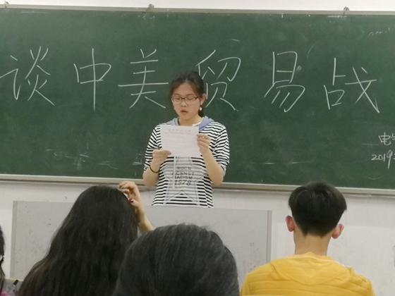 5月24日晚,电气工程系党总支组织学生党员在6教101开展以“谈谈中美贸易战”为主题的党日活动。全体学生党员参加了本次活动。活动由沈仁翔同学主持。