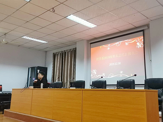 12月30日下午,经济管理系在2教201室召开2019级班级期末总结汇报交流会。年级辅导员周常国老师和2019级各班班干部全部参加会议。