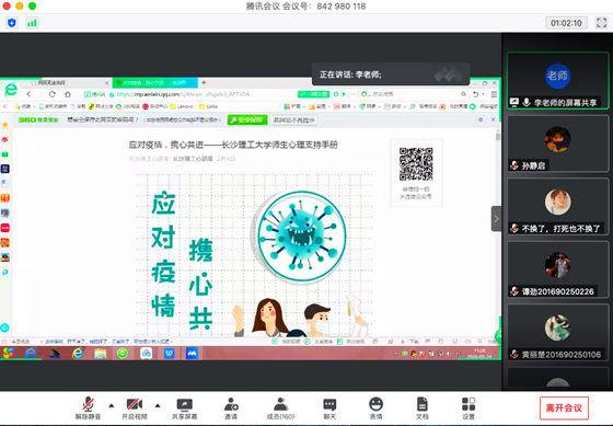 最后李琳带领同学们以线上讨论形式进行交流,并针对疫情期间可能产生的心理问题进行了耐心分析和排解。
