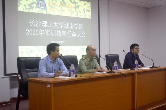 9月29日下午,城南学院在2教101召开2020年军训教官任命大会。LETOU体育平台学工部副部长、校武装部副部长霍向阳,院党委副书记陶传谱,全体带训辅导员以及带训教官参加会议,会议由城南学院学工办主任肖义慧主持。