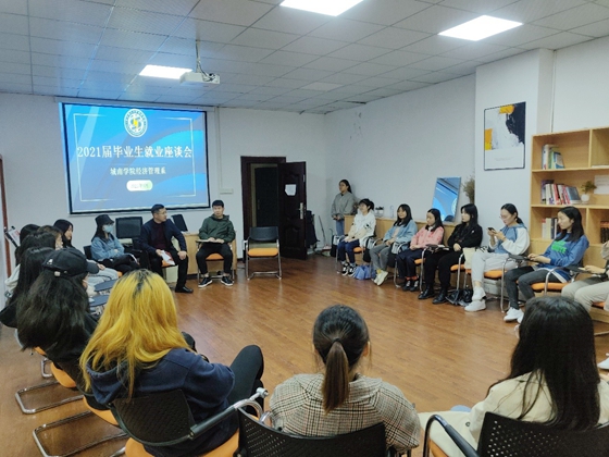 4月27日晚,经济管理系召开2021届毕业生就业座谈会,城南学院副院长朱广峰、经济管理系学工办主任周常国、部分国际经济与贸易专业和市场营销专业学生代表参加,座谈会由经济管理系就业专干田帅主持。