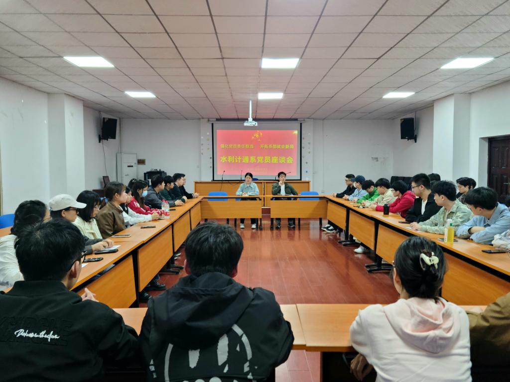 为做好城南学院水利计通系2024届毕业生就业工作,实现毕业生充分就业,4月11日,城南学院水利计通系党总支于金盆岭校区2教101召开“强化党员责任担当,开拓系部就业新局”2024届毕业生党员座谈会。城南学院副院长朱广峰、水利计通系党总支书记李琳、系党总支委员杨志凯出席了此次会议,2024届毕业生全体党员参加此次会议。