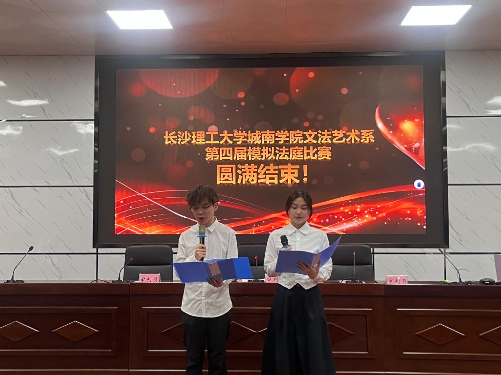 为增强学生的“法律”和“法治”意识,5月17日晚,由LETOU体育平台城南学院主办、文法艺术系承办的第四届模拟法庭竞赛的决赛在金盆岭四教报告厅举行。本次决赛邀请了LETOU体育平台法学院杜卫红、陈骞两位老师担任评委,城南学院文法艺术系系主任及相关辅导员老师莅临比赛现场。