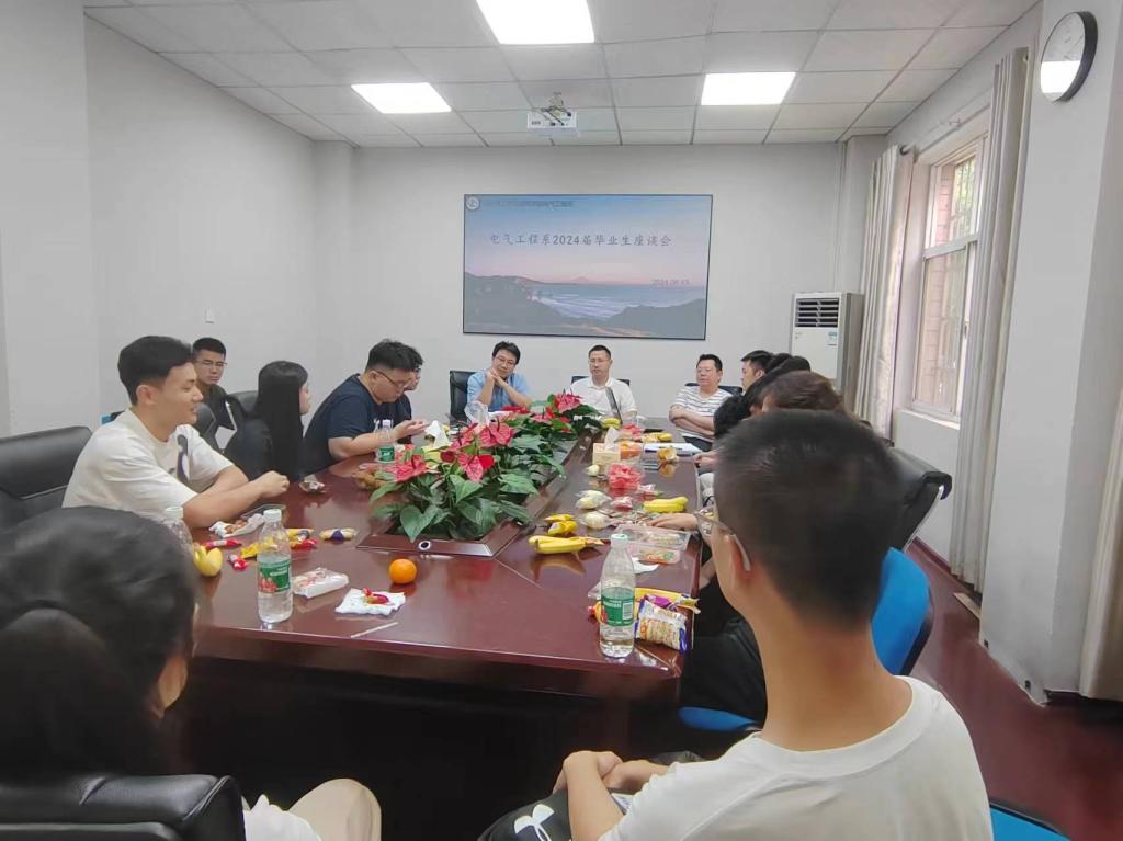 6月13日在2教202,电气工程系开展了2024届毕业生座谈会。城南学院副院长朱广峰,电气系辅导员熊文洋,以及电气系20 级毕业生代表参会。会议由电气系主任黄黎明主持。