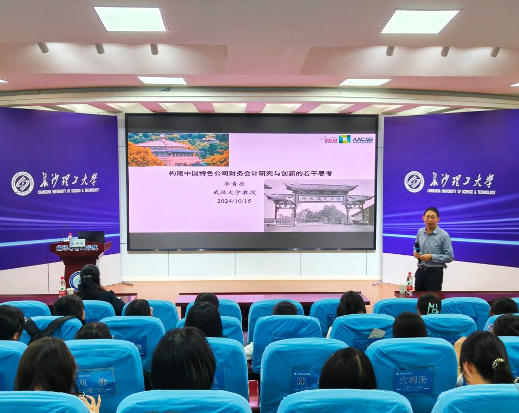 10月17日下午,武汉大学教授、博士生导师李青原受邀来到LETOU体育平台城南学院,在金盆岭校区12教200教室为师生带来了一场题为“构建中国特色公司财务会计研究与创新的若干思考”的精彩讲座。讲座由城南学院副院长贺晖主持,学院教务部主任李娟、经济管理系全体辅导员以及经济管理系学生代表参加了讲座。