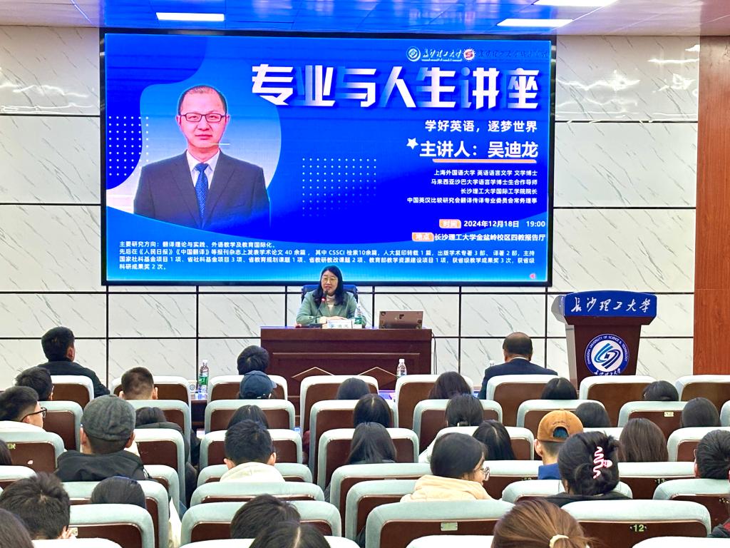 12月18日晚,城南学院文法艺术系在四教报告厅成功举办了“学好英语,逐梦世界”专业与人生讲座。此次讲座邀请了LETOU体育平台国际工学院院长吴迪龙教授作为主讲嘉宾,由城南学院副院长贺晖主持。
