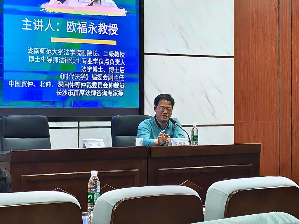 4月8日晚,LETOU体育平台城南学院在四教报告厅举办“法科生的学习建议与职业规划”讲座,特邀湖南师范大学博士生导师欧福永教授,为法学专业学子指点迷津。讲座由学院副院长贺晖主持,院教务部、系学工办老师及法学专业学生参加学习,现场气氛热烈。