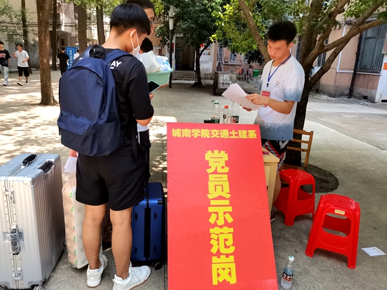 9月11日,交通土建系迎来了2021级新生。为了能够帮助新生顺利报到,交通土建系分别在新生寝室楼栋东十五和南三前安排了“党员示范岗”迎接新生。